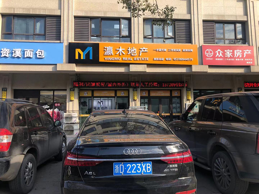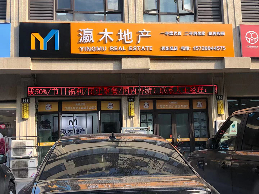 灜木地產(chǎn)(買房賣房首選)雙層鋁塑板|超級(jí)字門頭|背打光背景墻